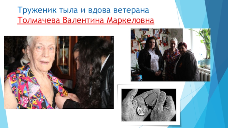Слайд 8Труженик тыла и вдова ветерана Толмачева Валентина Маркеловна