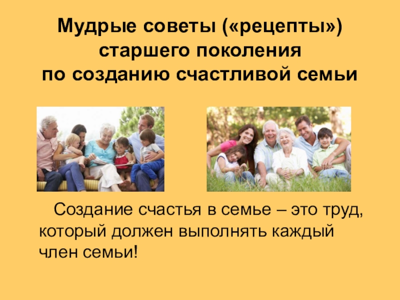 Создание счастья в семье – это труд, который должен выполнять каждый член семьи!