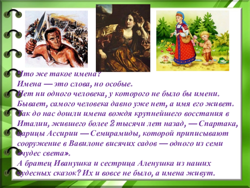 Имена – особые слова, они должны быть у всех людей, каждый человек имеет свое имя.