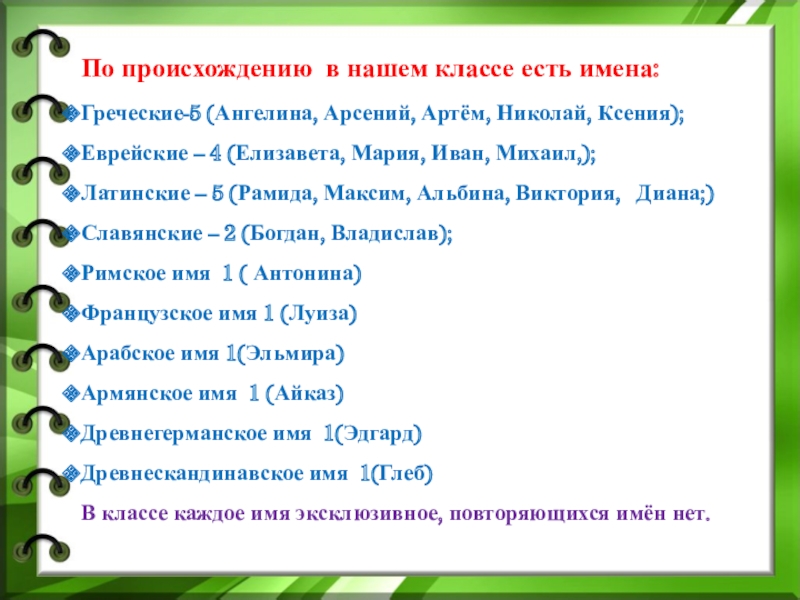 Слайд 10Каково значение наших имен, почему нас так назвали. В ходе исследования