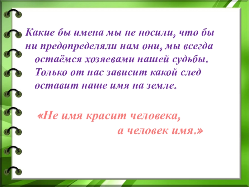 Слайд 54Имя человека - это судьба человека, это тот символ, который сопровождает