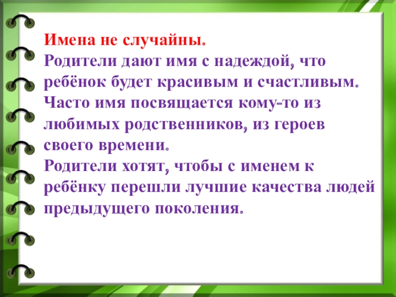 Родители хотят, чтобы с именем к ребёнку перешли лучшие качества людей предыдущего поколения.