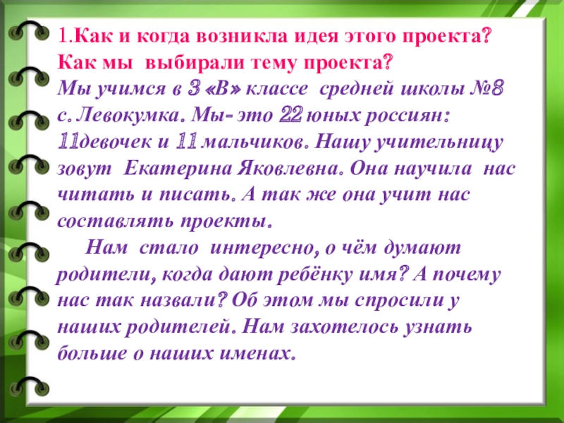 1.Как и когда возникла идея этого проекта? Как мы выбирали тему