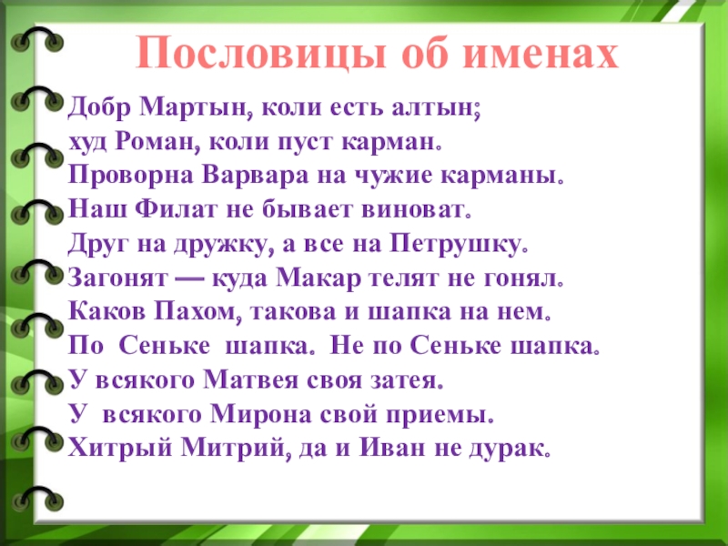 Имена людей – это часть истории народов. В них отражаются быт, верования, чаяния, фантазия и творчество народов. А знать историю своего народа должен каждый человек.