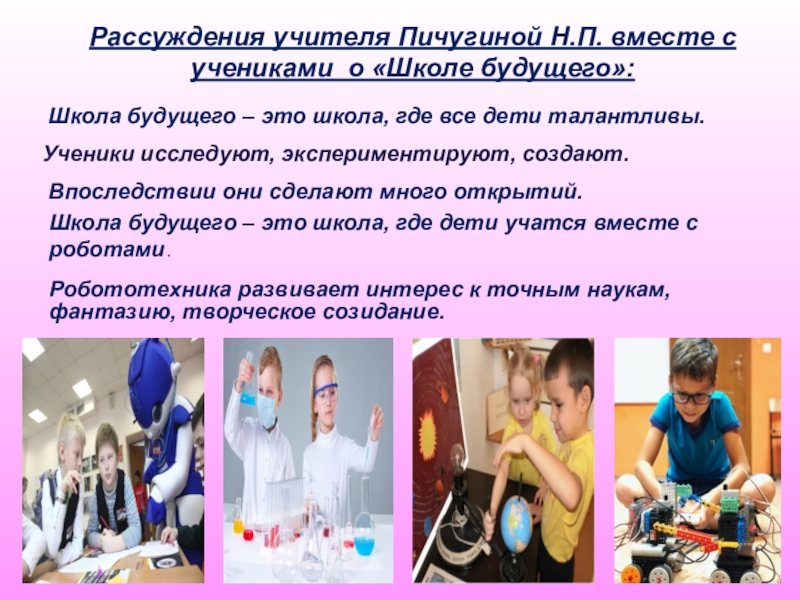Рассуждения учителя Пичугиной Н.П. вместе с учениками о «Школе будущего»:
