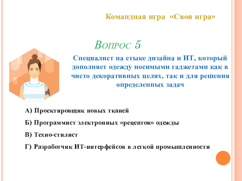 Г) Разработчик ИТ-интерфейсов в легкой промышленности