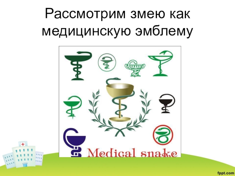 Слайд 21Рассмотрим змею как медицинскую эмблему