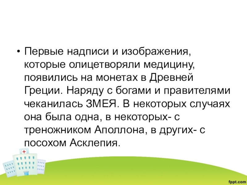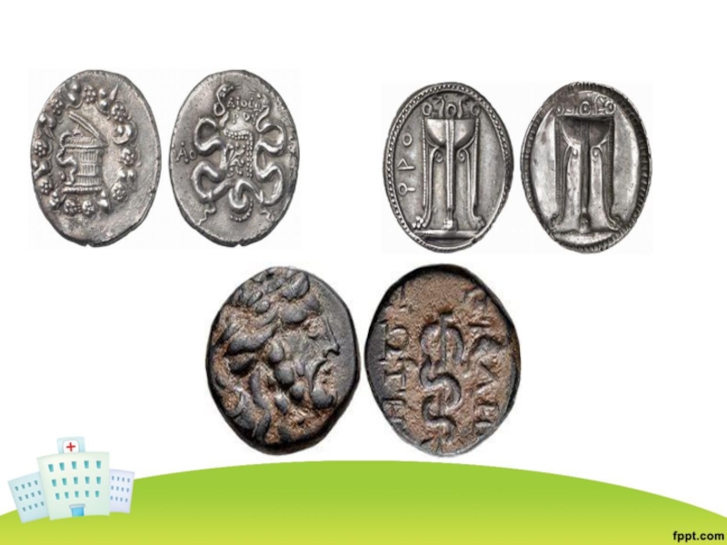 Первые надписи и изображения, которые олицетворяли медицину, появились на монетах в