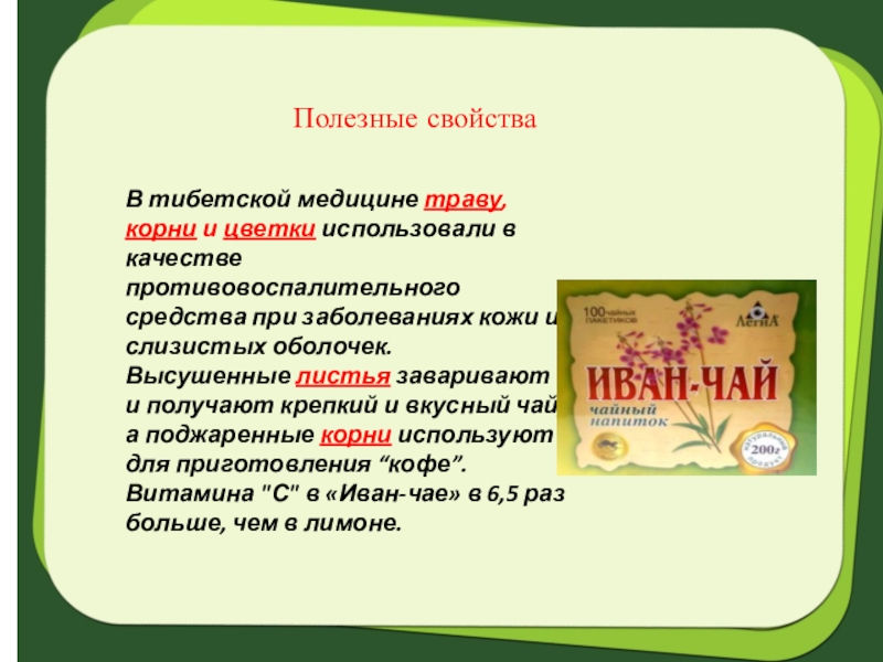 Витамина "С" в «Иван-чае» в 6,5 раз больше, чем в лимоне.
