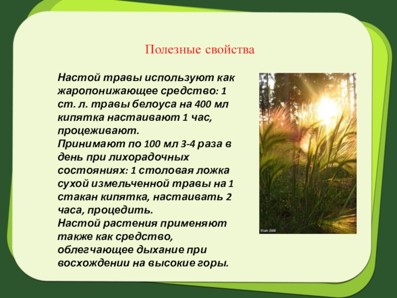 травы белоуса на 400 мл кипятка настаивают 1 час, процеживают.