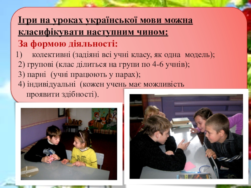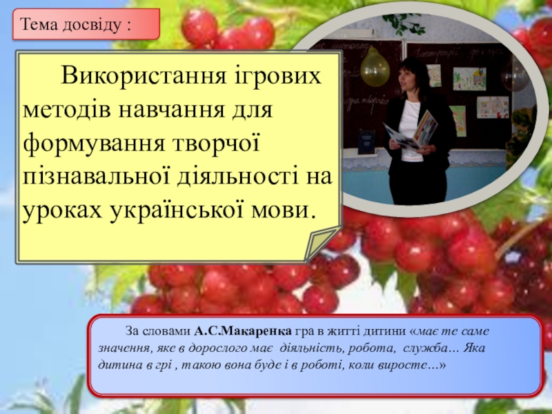 Використання ігрових методів навчання для формування творчої пізнавальної діяльності на уроках української мови.