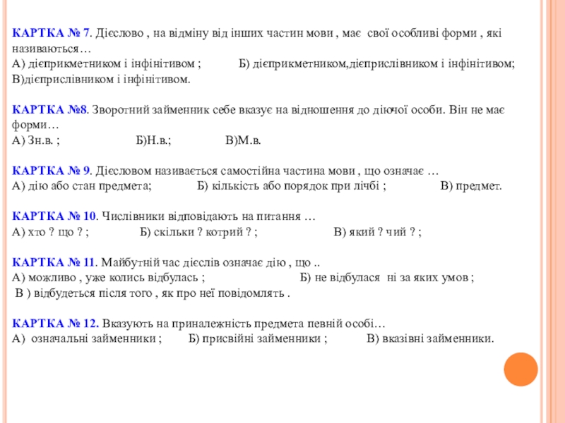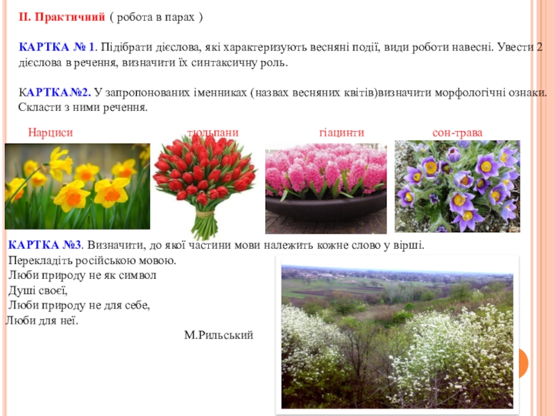 КАРТКА №3. Визначити, до якої частини мови належить кожне слово у вірші.