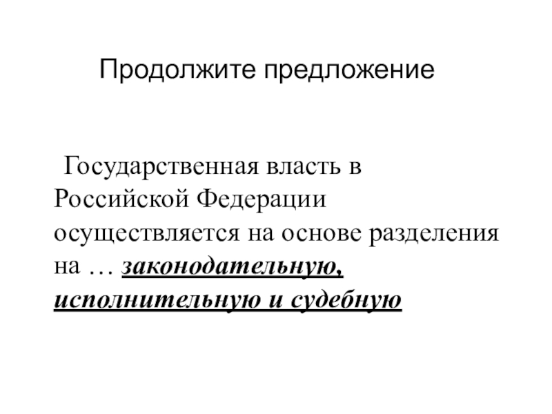 Государственная власть в Российской Федерации осуществляется на основе разделения