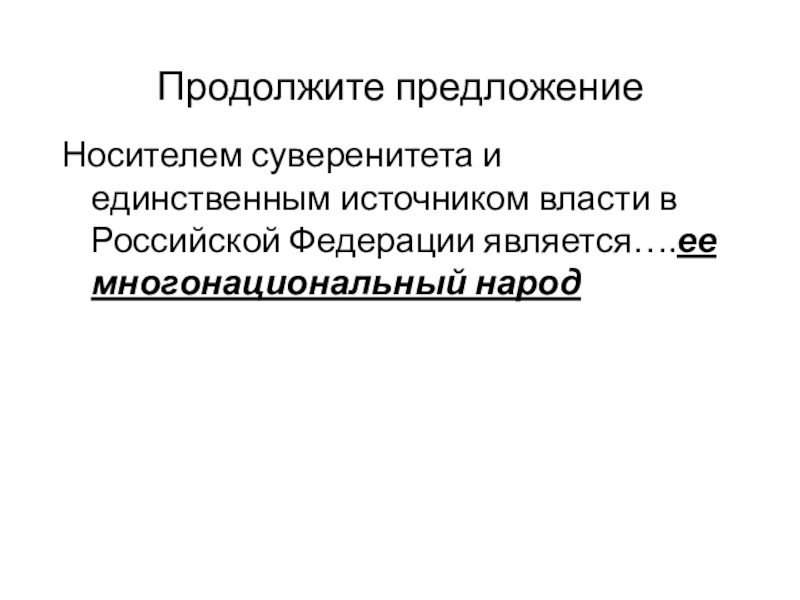 Носителем суверенитета и единственным источником власти в Российской Федерации является….ее