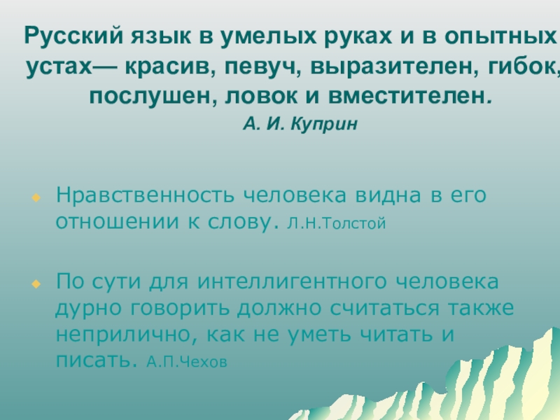 Слайд 69Русский язык в умелых руках и в опытных устах— красив, певуч,