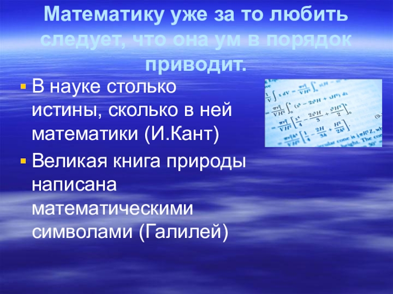 Слайд 3Математику уже за то любить следует, что она ум в порядок