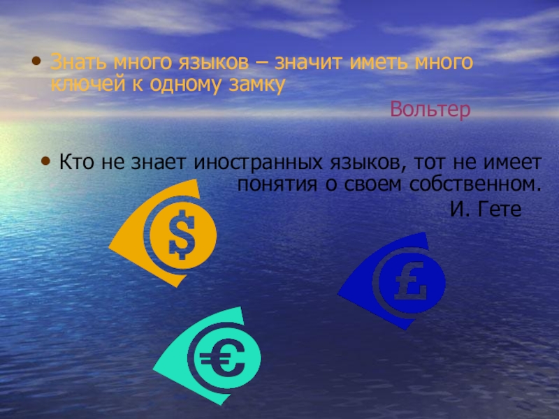 Слайд 17Знать много языков – значит иметь много ключей к одному замку