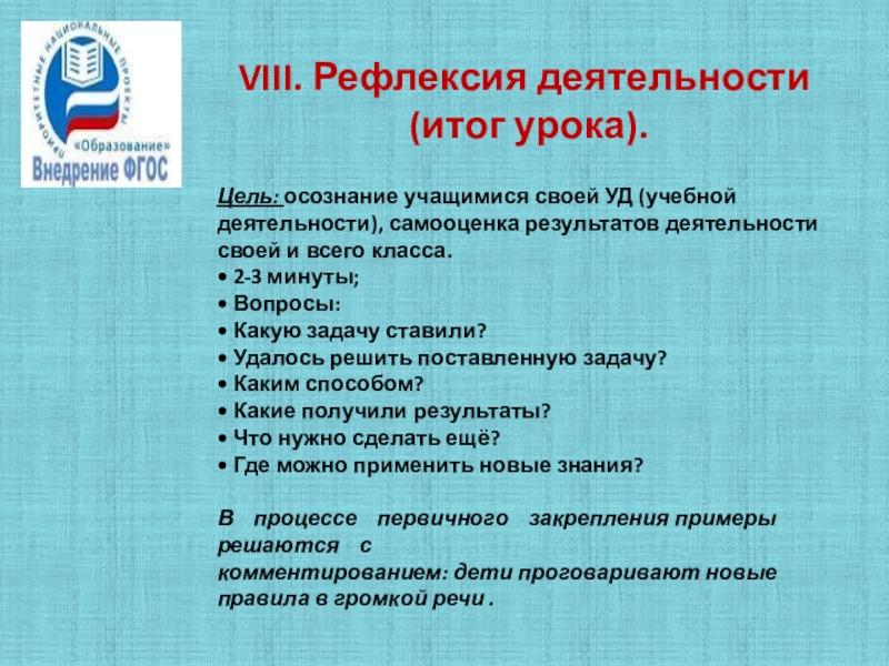 Слайд 21VIII. Рефлексия деятельности