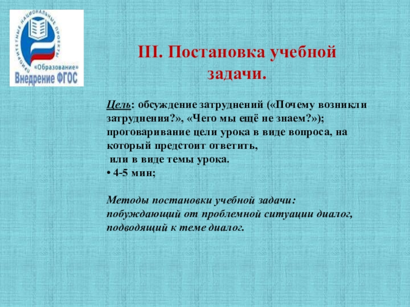 Слайд 16III. Постановка учебной задачи.