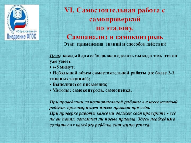 Слайд 19VI. Самостоятельная работа с самопроверкой