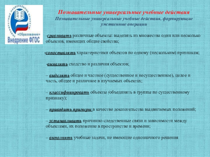 Слайд 10Познавательные универсальные учебные действия