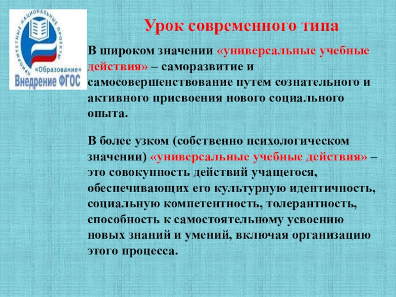 Слайд 2Урок современного типа