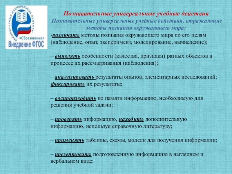 Познавательные универсальные учебные действия, отражающие методы познания окружающего