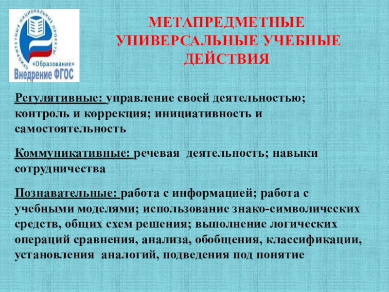 Слайд 7Метапредметные универсальные учебные действия