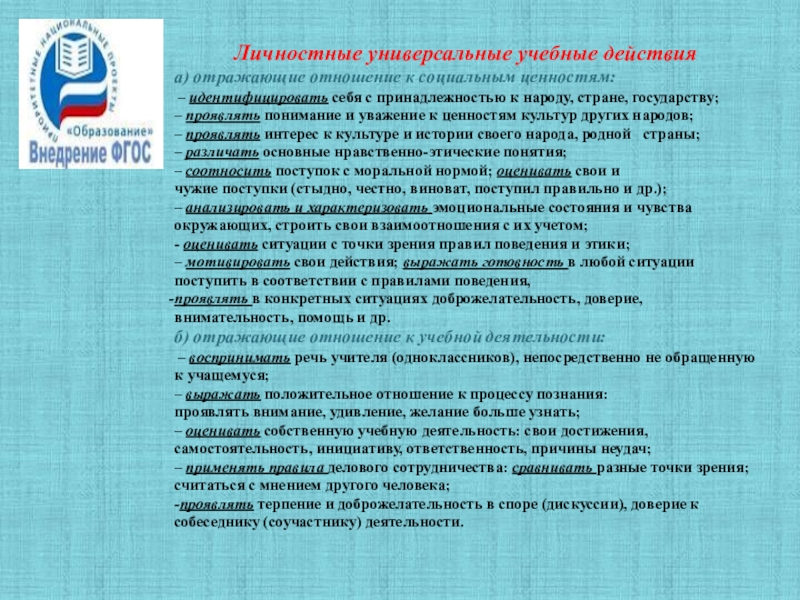 Слайд 5Личностные универсальные учебные действия