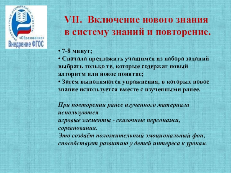 Слайд 20VII. Включение нового знания