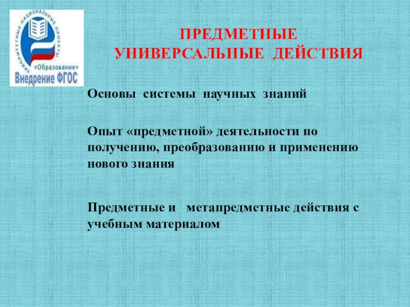 Слайд 12ПРЕДМЕТНЫЕ УНИВЕРСАЛЬНЫЕ ДЕЙСТВИЯ