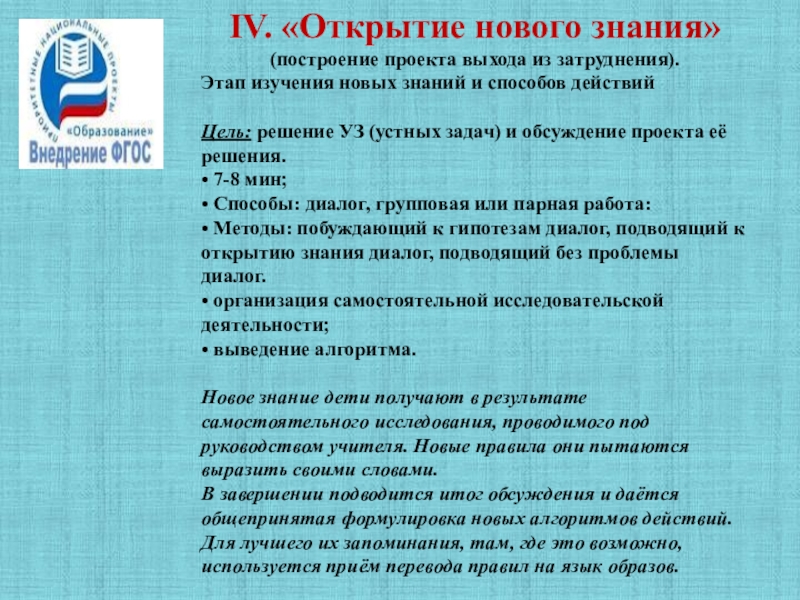 Слайд 17IV. «Открытие нового знания»