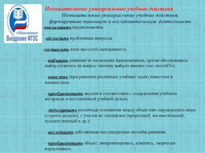 Познавательные универсальные учебные действия, формирующие поисковую и исследовательскую