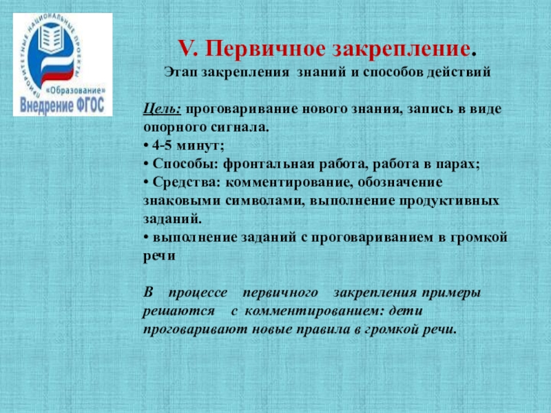 Слайд 18V. Первичное закрепление.