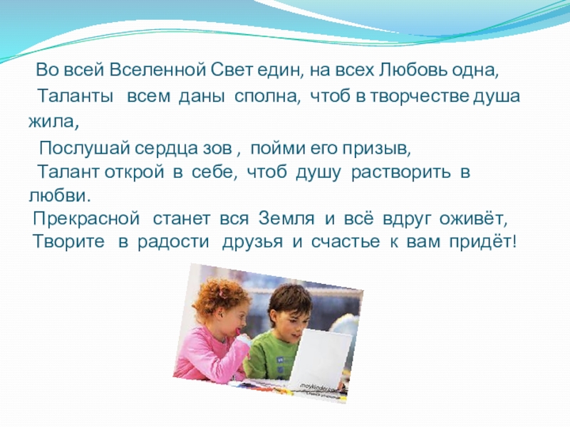 Это сайт презентаций, где можно хранить и обмениваться своими презентациями, докладами, проектами, шаблонами в формате PowerPoint с другими пользователями. Мы помогаем школьникам, студентам, учителям, преподавателям хранить и обмениваться учебными материалами.