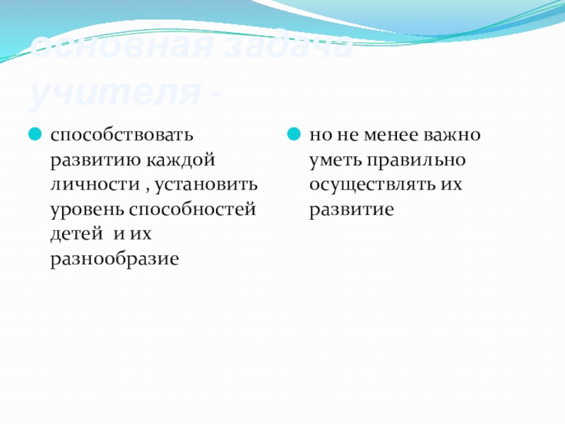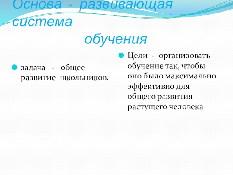 Цели - организовать обучение так, чтобы оно было максимально эффективно для общего развития растущего человека