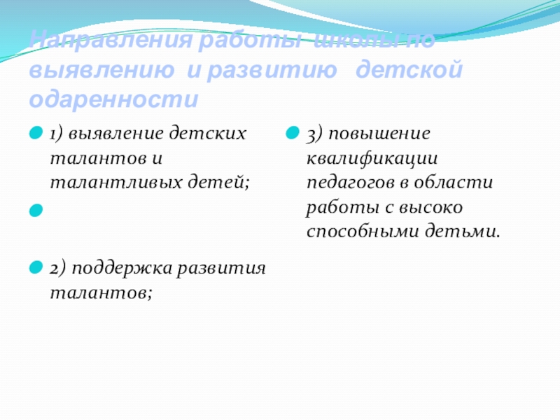 3) повышение квалификации педагогов в области работы с высоко способными детьми.