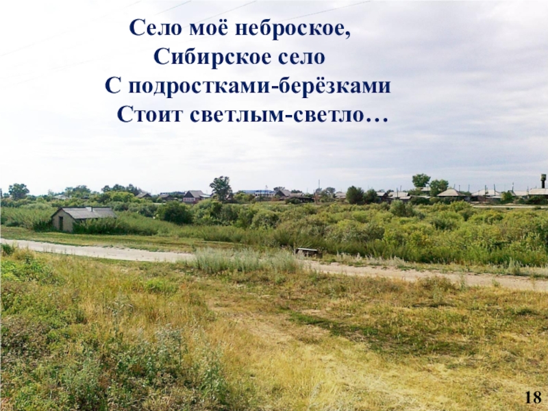 Село моё неброское, Сибирское селоС подростками-берёзкамиСтоит светлым-светло…