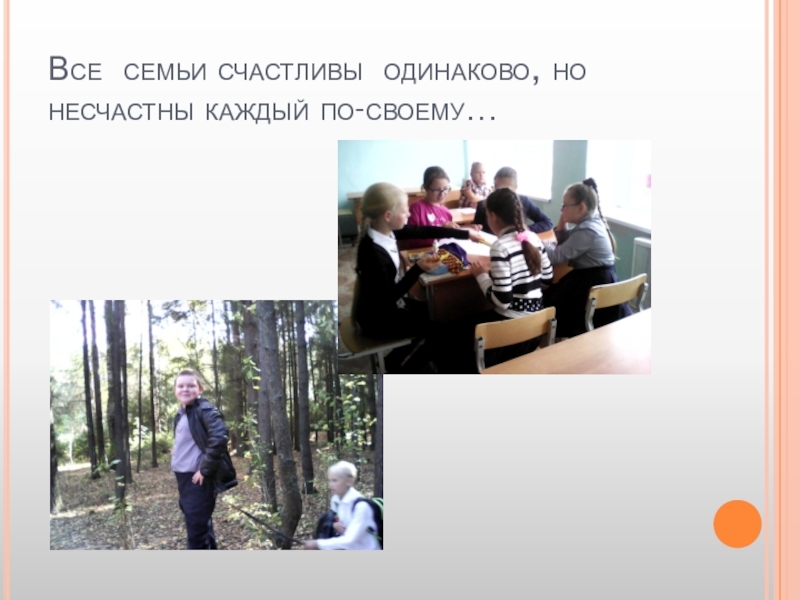 Слайд 7Все семьи счастливы одинаково, но несчастны каждый по-своему…