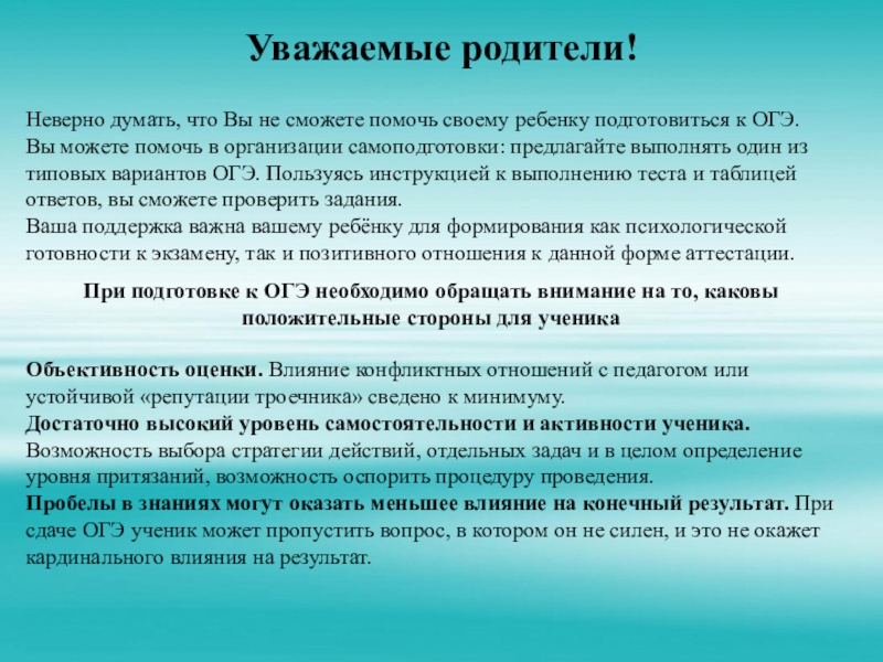 При подготовке к ОГЭ необходимо обращать внимание на то, каковы положительные стороны для ученика