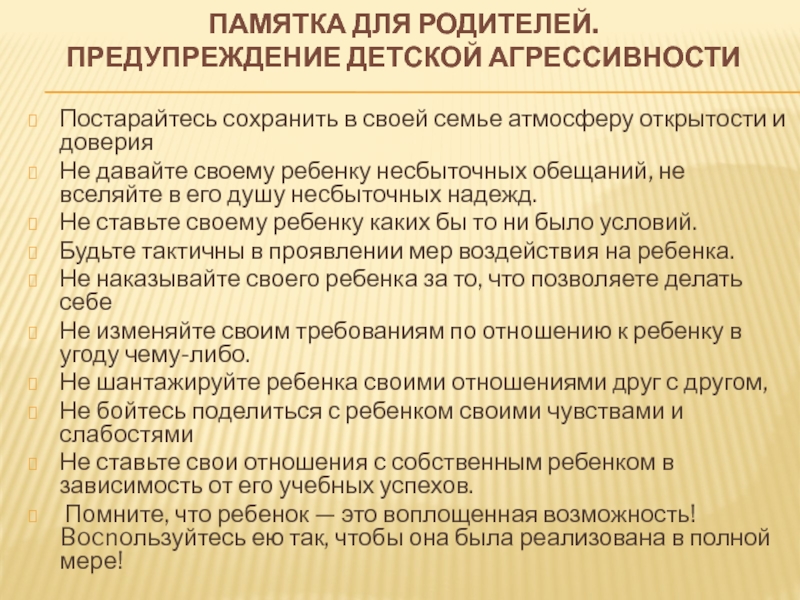Помните, что ребенок — это воплощенная возможность! Bocnoльзуйтесь ею так, чтобы она была реализована в полной мере!