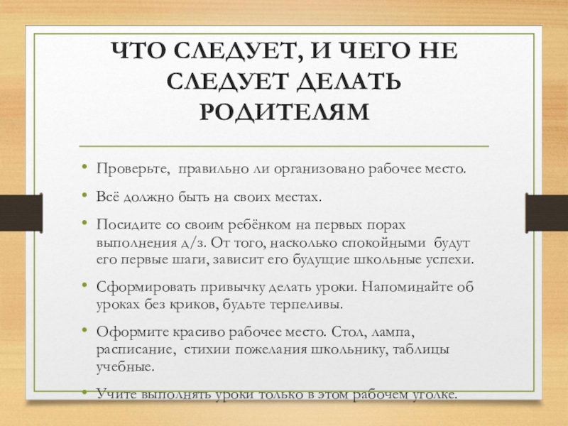 Слайд 16ЧТО СЛЕДУЕТ, И ЧЕГО НЕ СЛЕДУЕТ ДЕЛАТЬ РОДИТЕЛЯМ