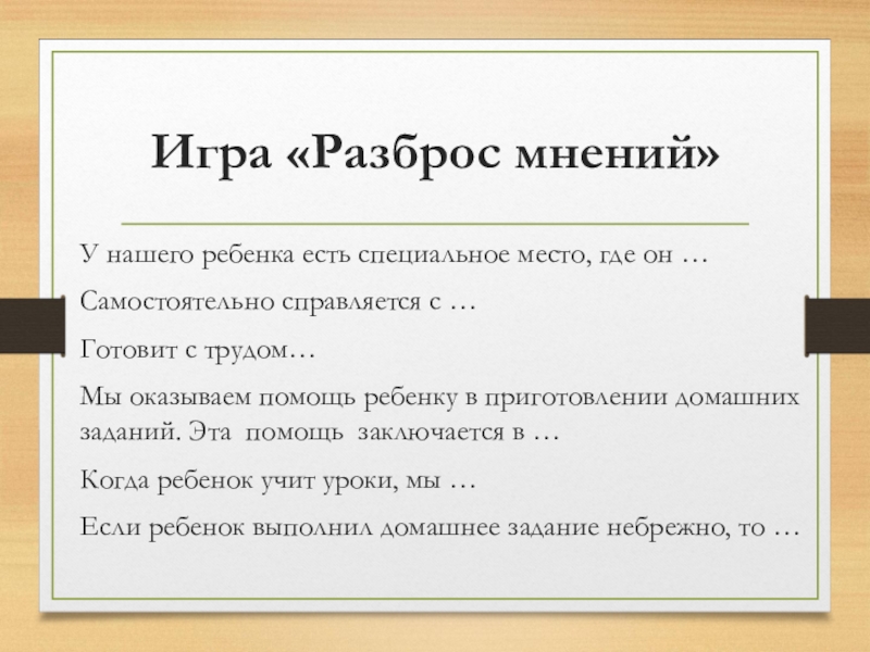 Мы оказываем помощь ребенку в приготовлении домашних заданий. Эта помощь заключается в …