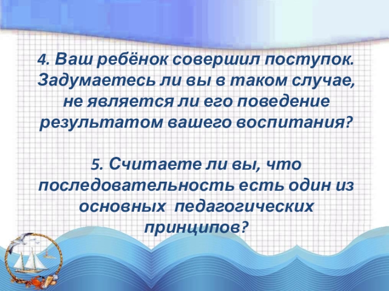 Слайд 214. Ваш ребёнок совершил поступок. Задумаетесь ли вы в таком случае,