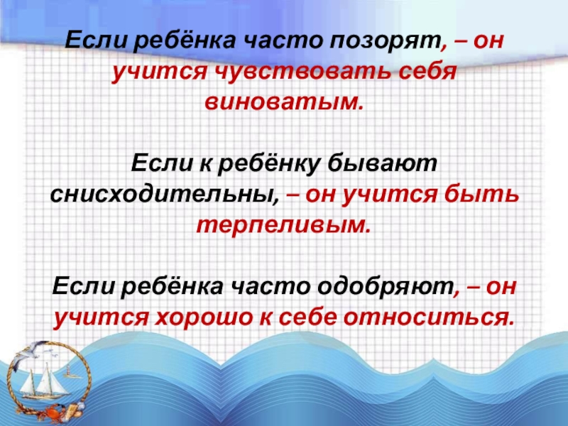 Слайд 30Если ребёнка часто позорят, – он учится чувствовать себя виноватым.