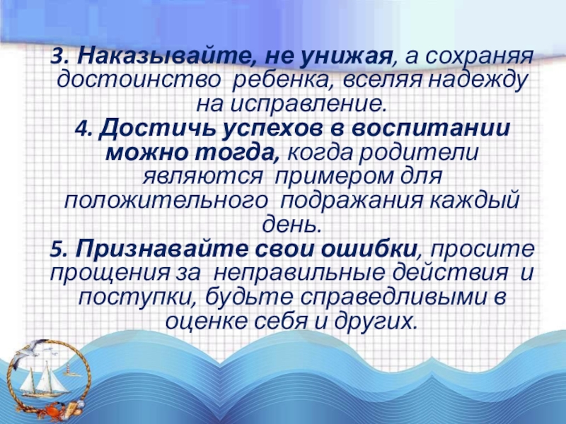 Слайд 143. Наказывайте, не унижая, а сохраняя достоинство ребенка, вселяя надежду на