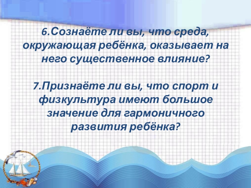 Слайд 226.Сознаёте ли вы, что среда, окружающая ребёнка, оказывает на него существенное
