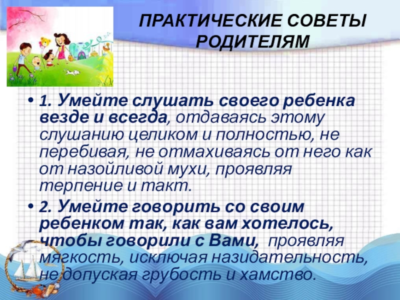 Слайд 13ПРАКТИЧЕСКИЕ СОВЕТЫ РОДИТЕЛЯМ