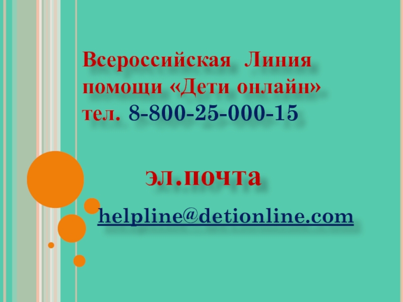 Всероссийская Линия помощи «Дети онлайн» тел. 8-800-25-000-15 helpline@detionline.comэл.почта