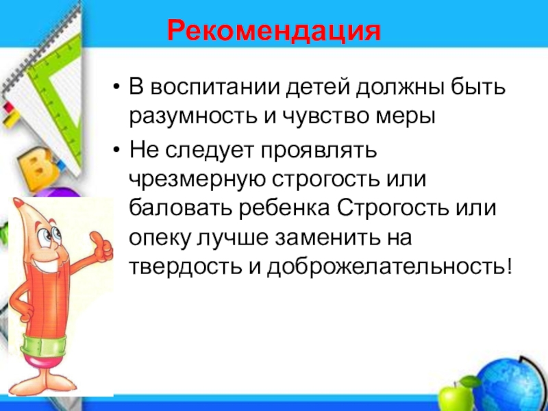 проявлять чрезмерную строгость или баловать ребенка Строгость или опеку лучше заменить на твердость и доброжелательность!